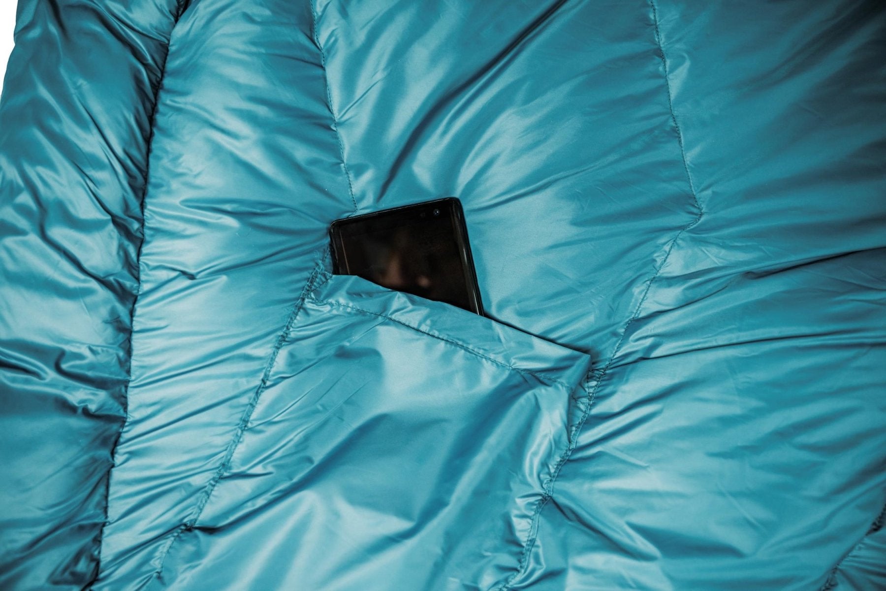Kopfkisseneinschubfach: Schiebt man in das Kisseneinschubfach z.B. eine Fleecejacke, hat der Schlafsack ein unverrutschbares Kopfkissen.