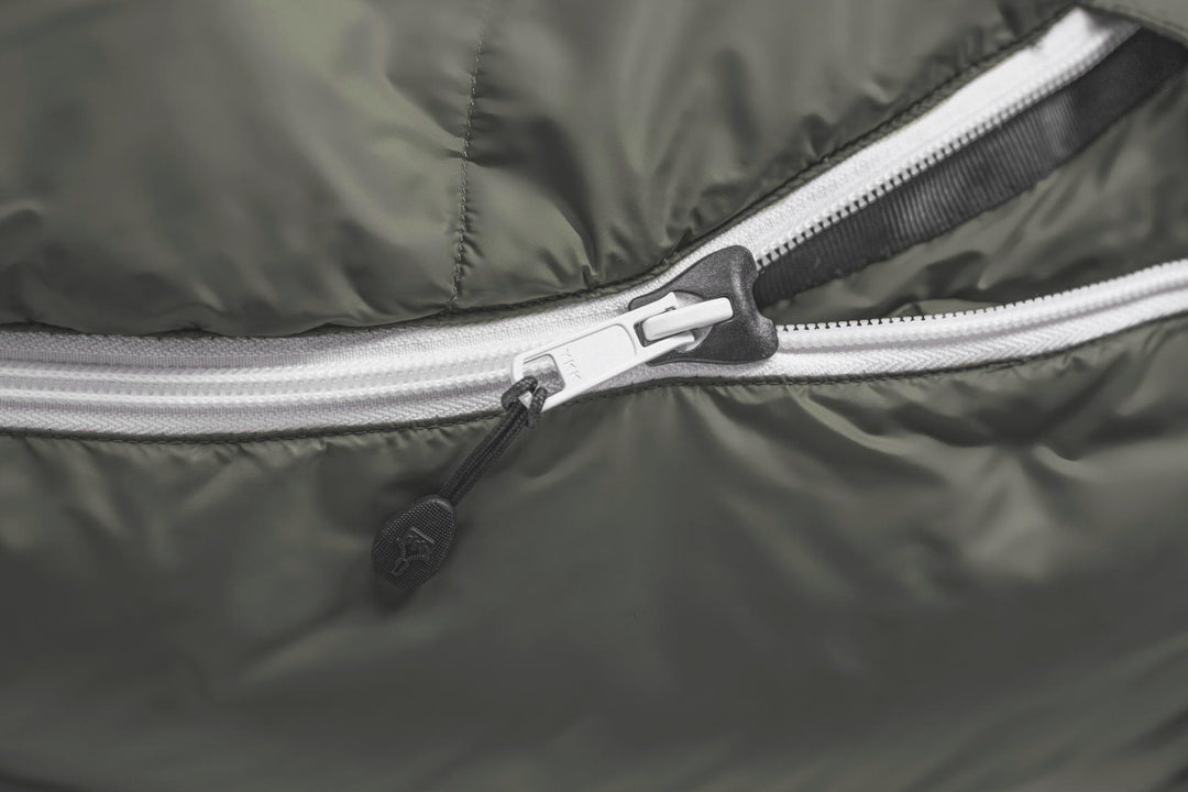 - Fußbelüftungssystem: Durch den innovativen Reißverschlussverlauf können die Füße bequem auf der Oberseite des Schlafsacks abgelegt werden und überschüssige Wärme kann entweichen.
