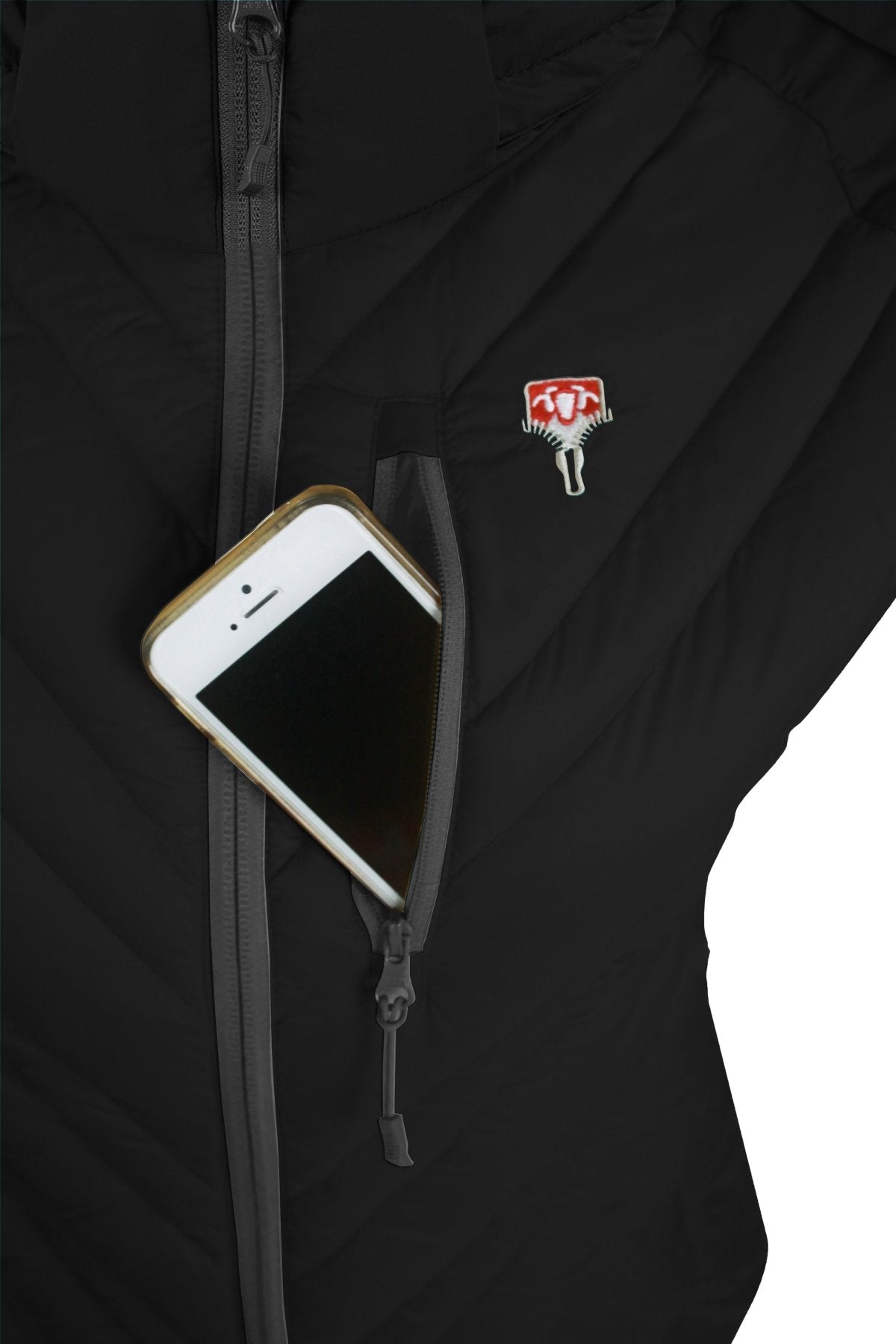 - Trockeneres Trageklima dank der Hybridkonstruktion und Bodymapping: Die DownWool®-Isolation sorgt an den empfindlichsten Stellen – Oberkörper und Rücken – für optimale trockene Wärme, während die AlmWolle-Isolation an den Bereichen mit höherer Feuchtigkeitsabgabe – unterer Rücken, seitlich und in der Kapuze – für eine verbesserte Atmungsaktivität sorgt.