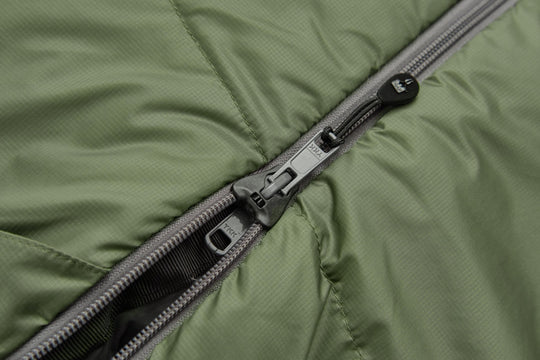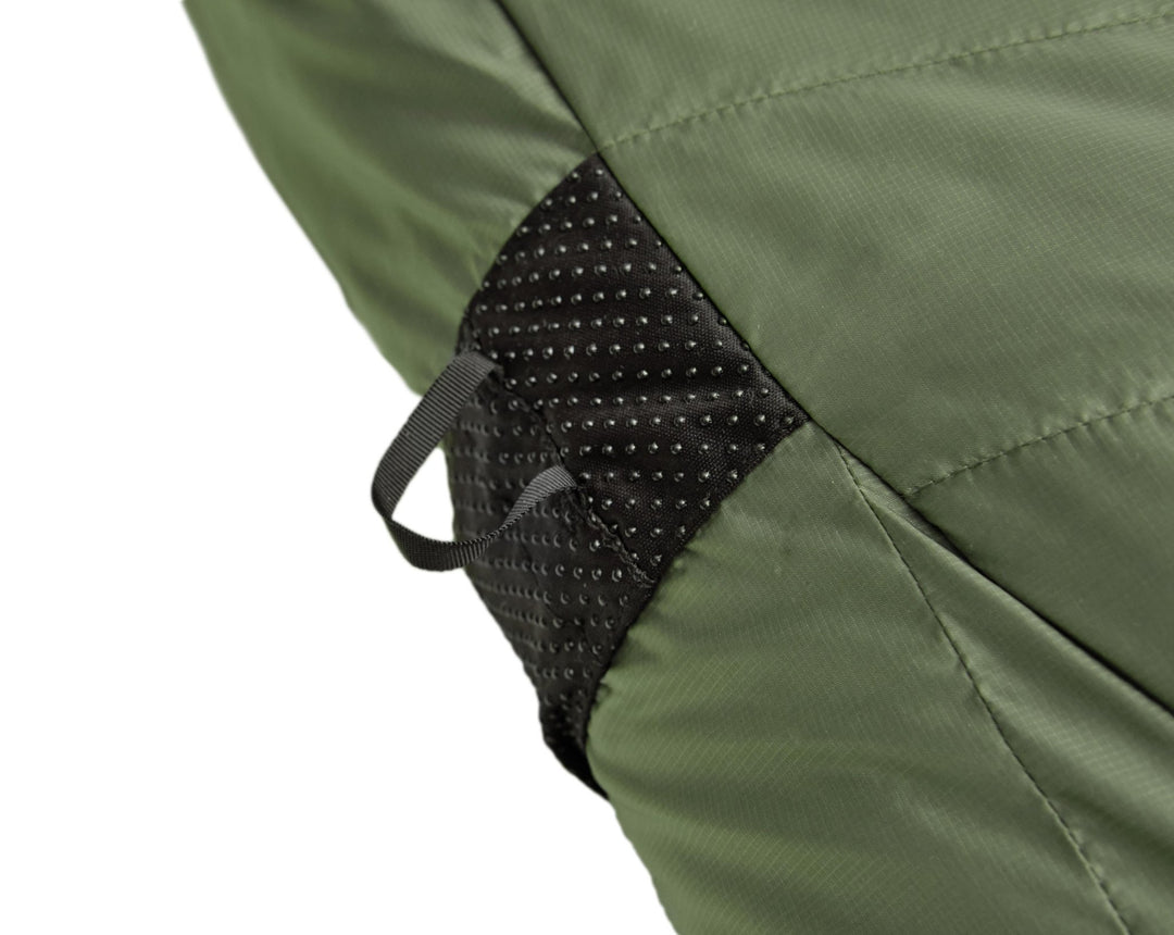 Auf der Unterseite des Schlafsacks befinden sich Antirutschstreifen mit Silikonnoppen. Diese verhindern ein Verrutschen von der Isomatte.