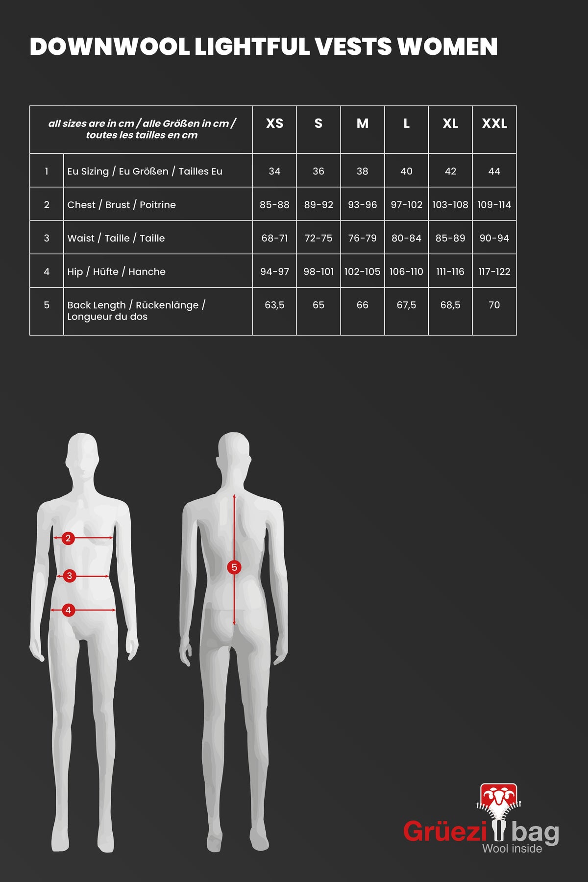 - Größerer Temperaturbereich: DownWool®-Westen haben einen größeren Temperaturbereich, bei dem man sich wohlfühlt und nicht überhitzt. Wolle gleicht Temperaturschwankungen aus.